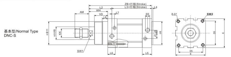 *실린더 배럴에 슬롯이 있는 DNC 시리즈와 마그넷 센서 장착을 위한 엔드 커버가 더 편리합니다.